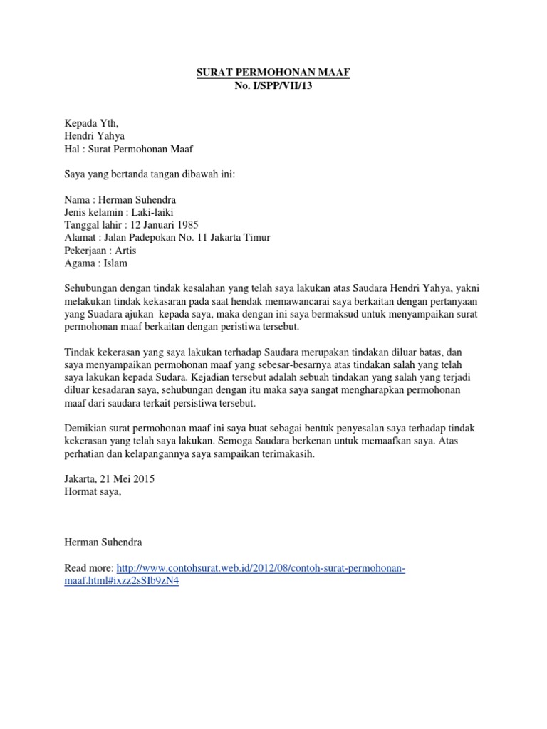Doc Surat Permohonan Maaf Rey Pras Academia Edu